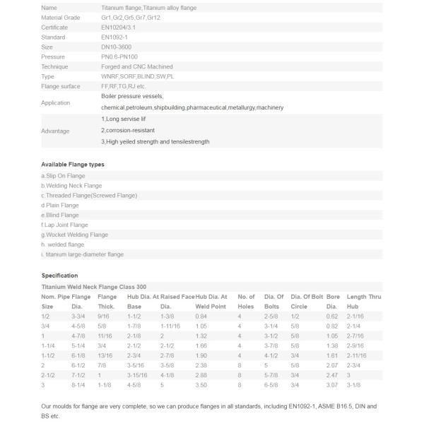 CNC Machined Titanium Weld Neck Flange Class 300 Gr2 Gr5 Gr7 Gr12 Images |
