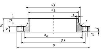 | Rated | d1 | D | b | k | h1 | d3 | s | r | h2 | d4 | f | Holes | Thread | d2 | Kg | |